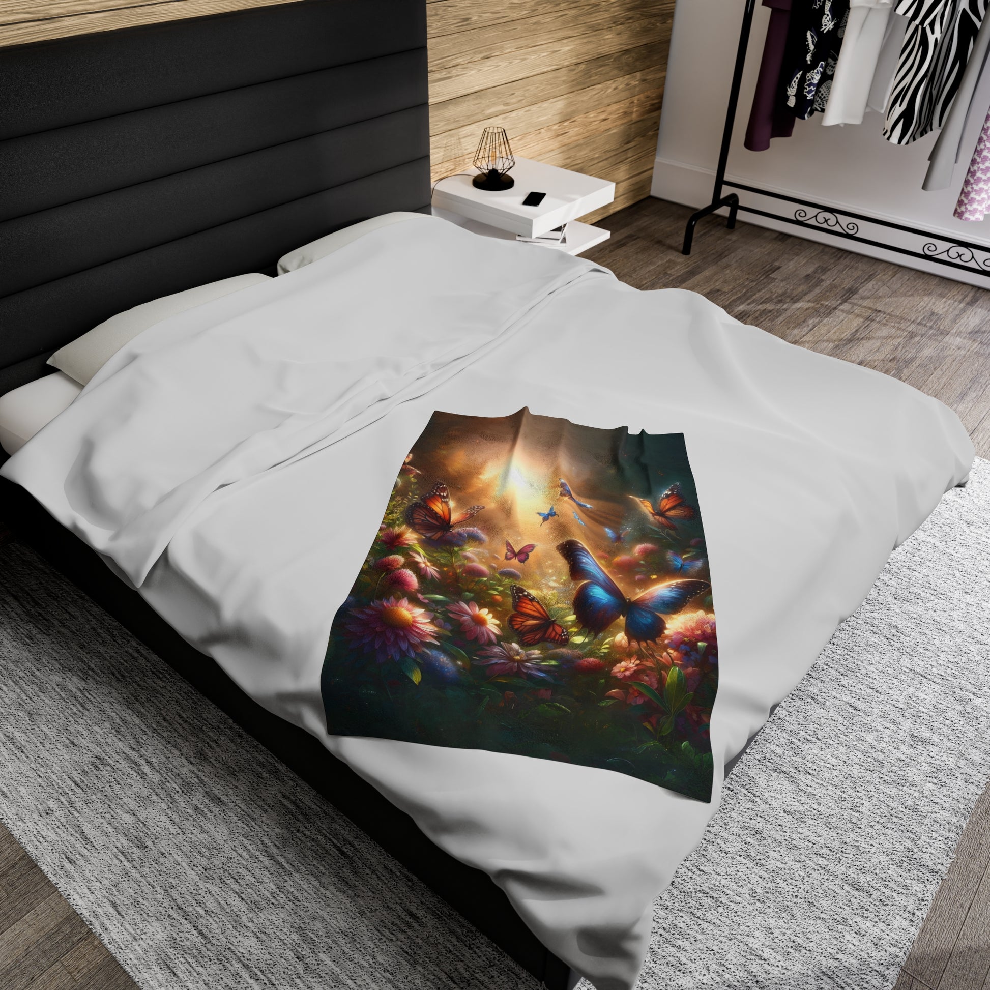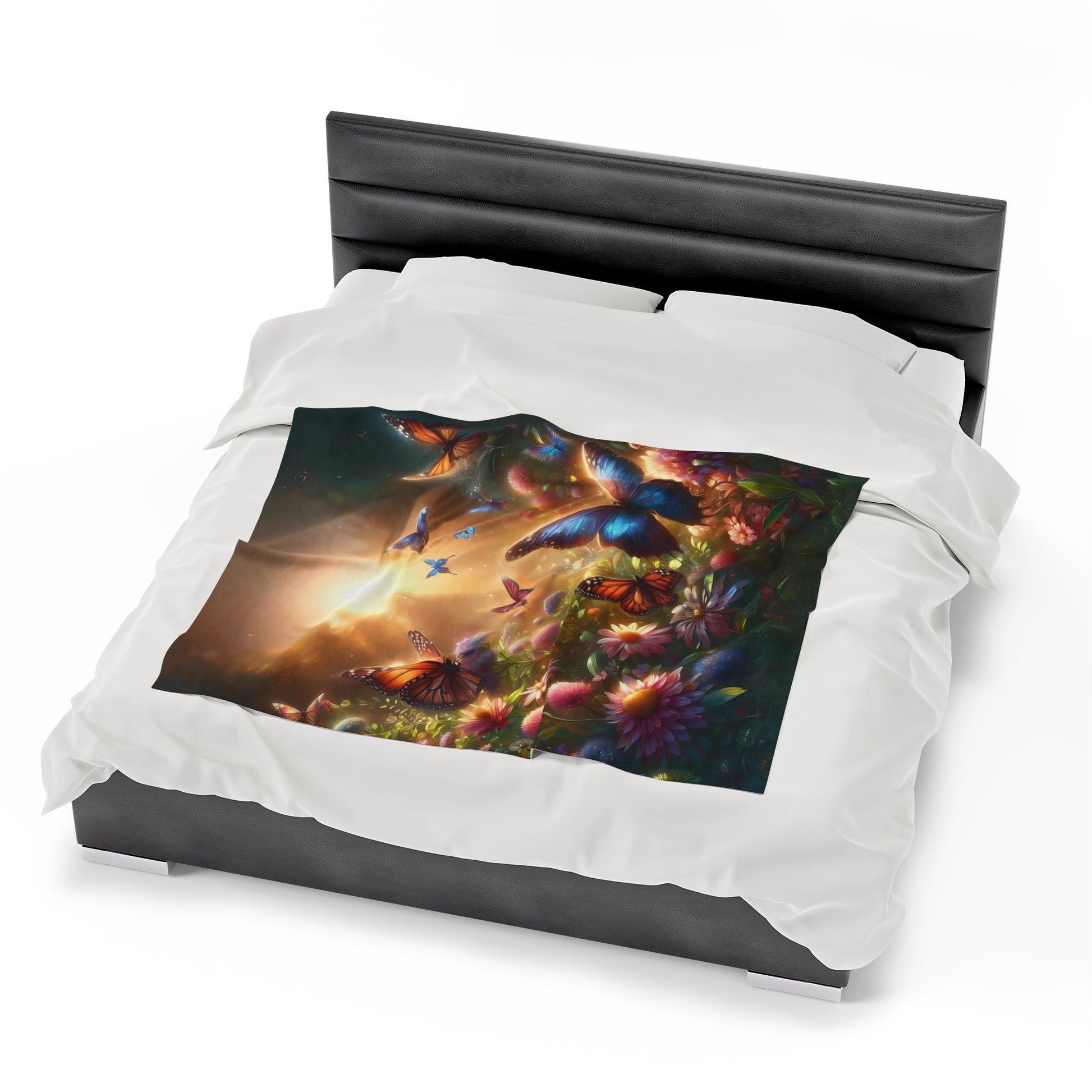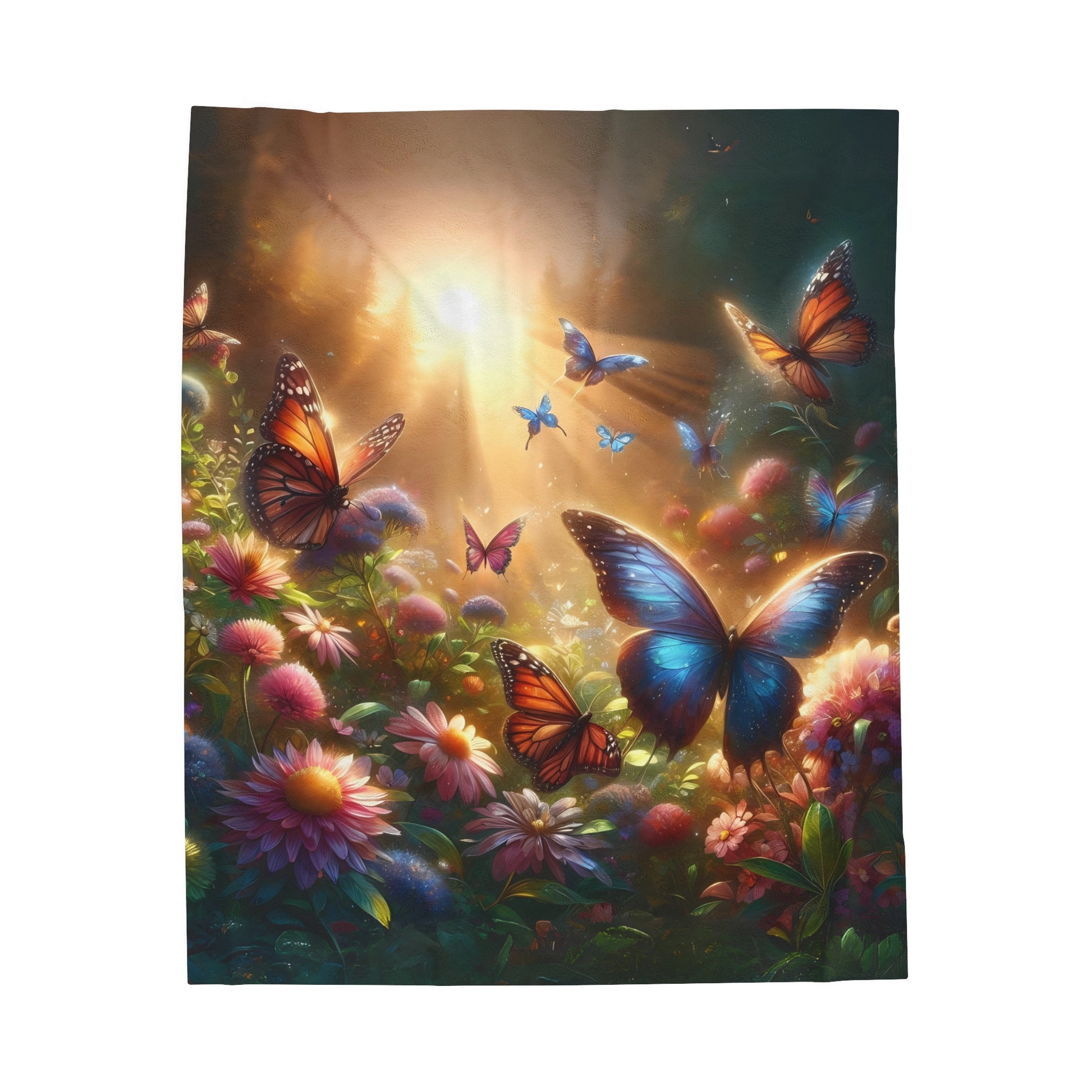Create a cozy and warm atmosphere at home with this Butterflies in Rays of Sunshine plush velveteen blanket. It is soft to touch and perfect for any home. Order yours today for yourself or as a gift for your friends and family. Available in three sizes: 30x40", 50x60", 60x80".