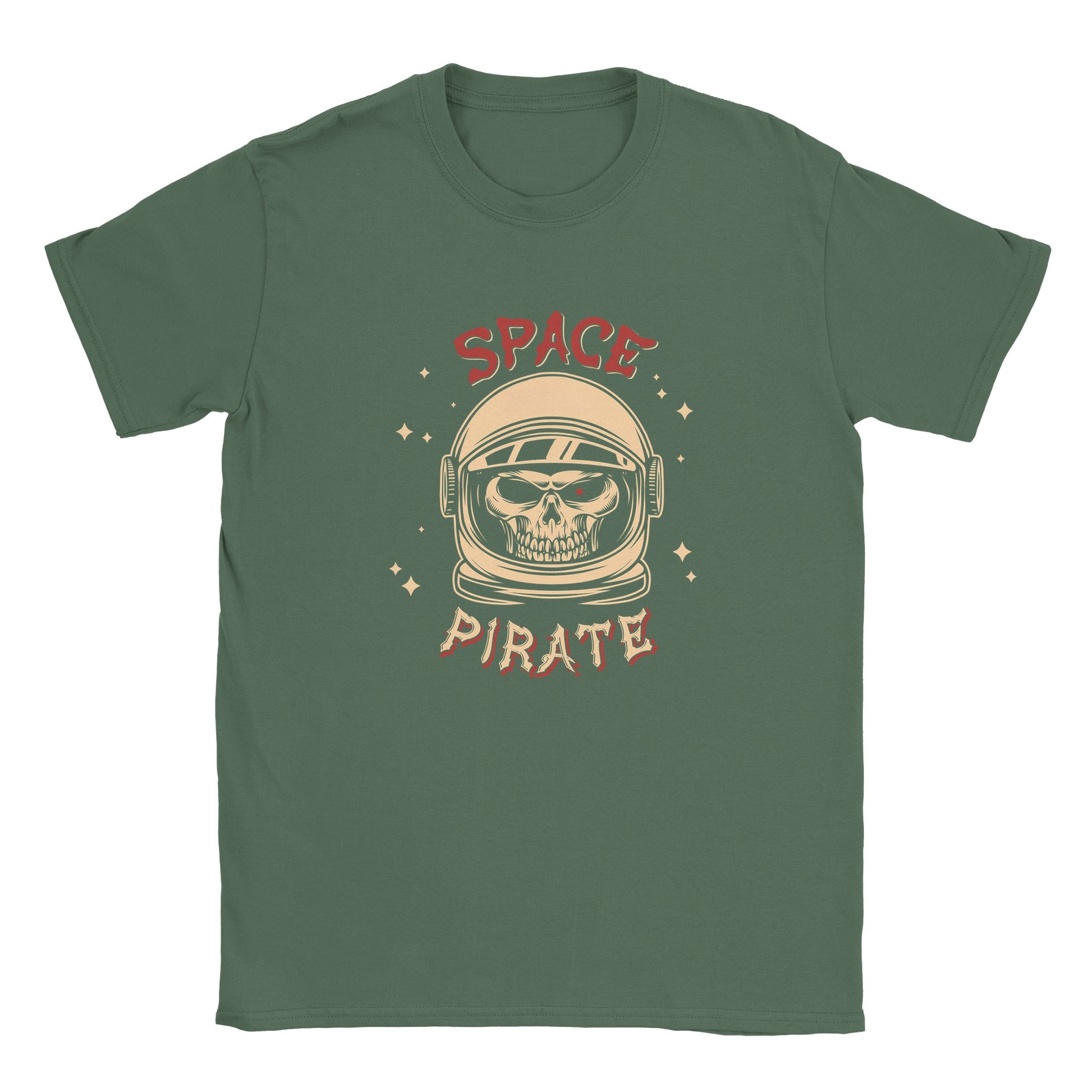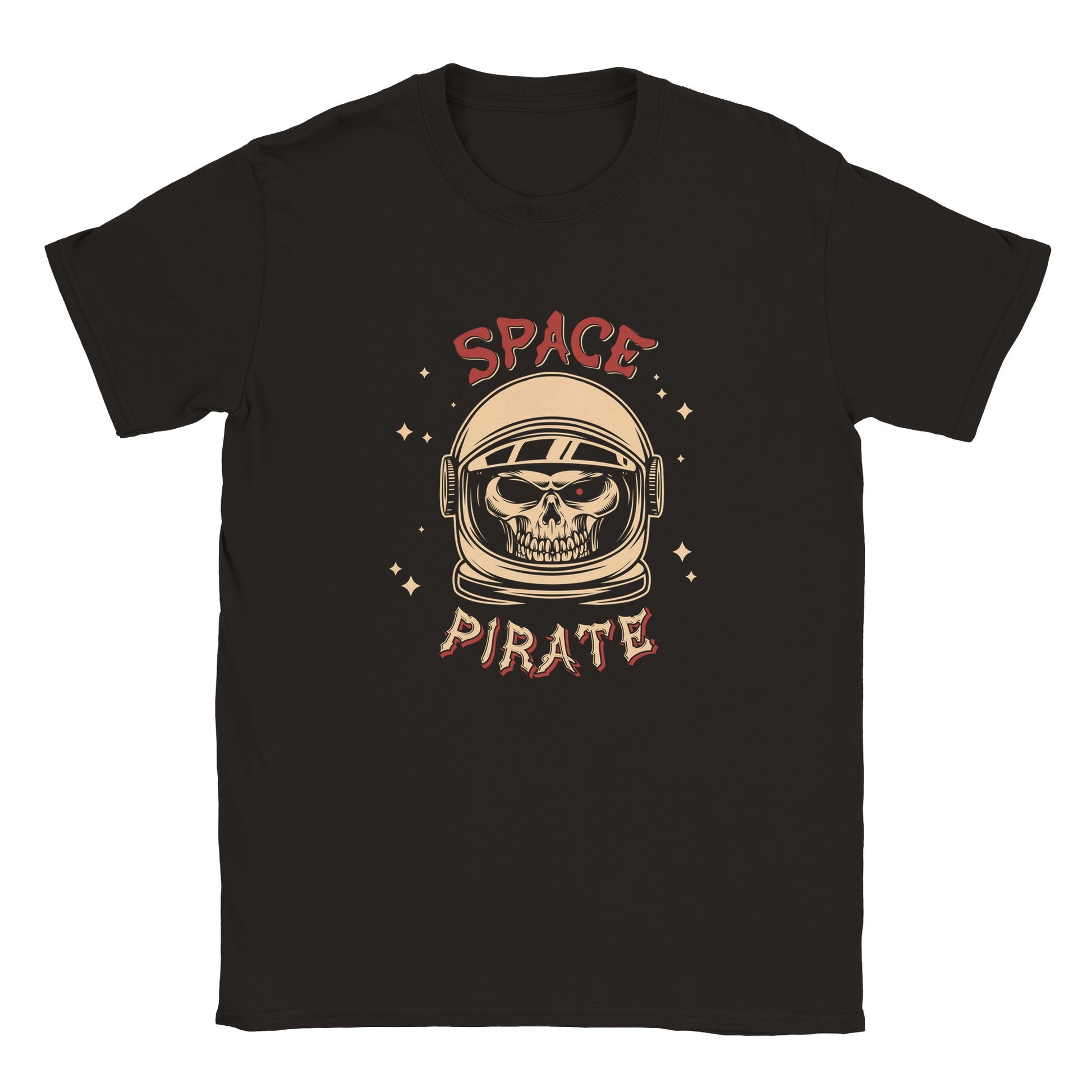 Space pirate graphic T will be a cool addition to your collection. A classic unisex t-shirt that works well with any outfit. Made of a heavier cotton with a double-stitched neckline and sleeves.